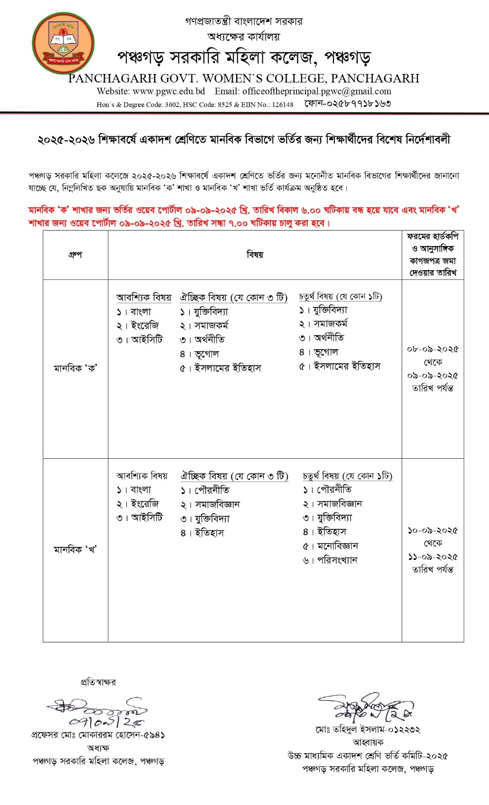 | 3 | 10 Sep, 2025 | মানবিক বিভাগের শিক্ষার্থীদের জানানো যাচ্ছে যে মানবিক (খ) শাখার আসন পুরণ হয়ে গেছে । এখন শুধু মানবিক (ক )তে ভর্তি হওয়া যাবে | View Download |